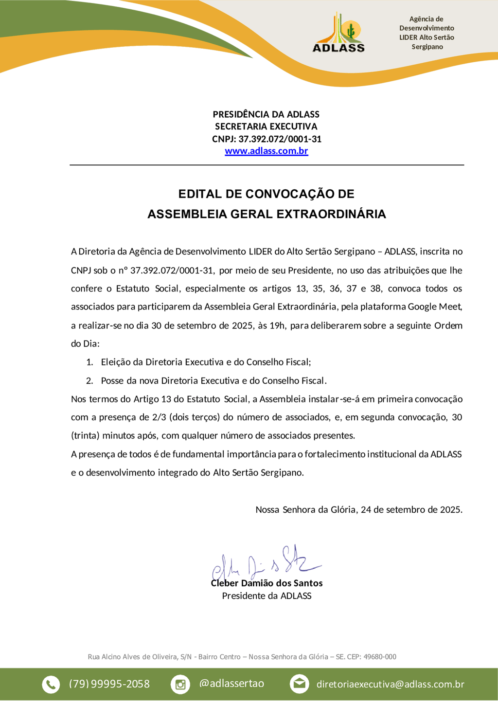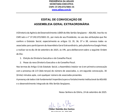 Assembleia para eleição da nova Diretoria Executiva e do Conselho Fiscal marcada para o dia 30 de setembro de 2025